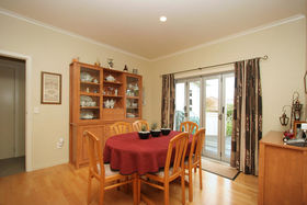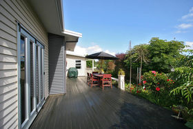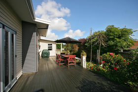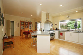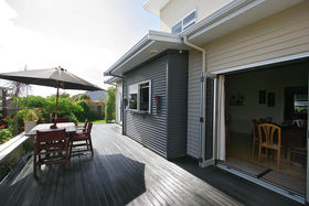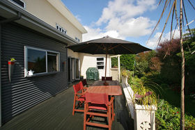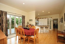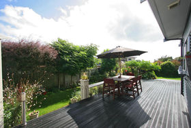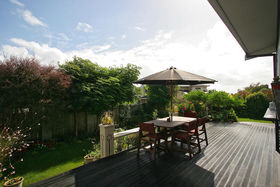 The kitchen and dining opens onto a sunny deck, the fully fenced section is beautifully planted for privacy and easy care.