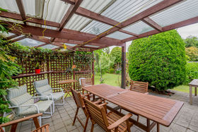 Outdoor living is catered for with pressed concrete patio with covered pergola sufficiently spacious for the BBQ and alfresco furniture privately screened by leafy green border plantings on a 711sqm freehold section.